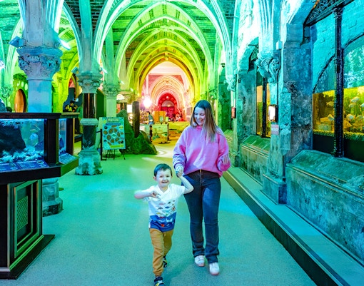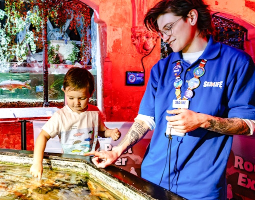 👉 Enter through the entrance on the Brighton Sea promenade. Walk through the original Victorian arcade, where large tanks display rays, sharks, and rockpool creatures, setting the tone for what’s ahead.